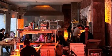 Площадка перед баром огорожена небольшим забором с зеленью, а внутри нее выставляют столы и стулья. До 23:00 здесь можно посидеть с друзьями под светом гирлянд.Предоставлено пресс-службой