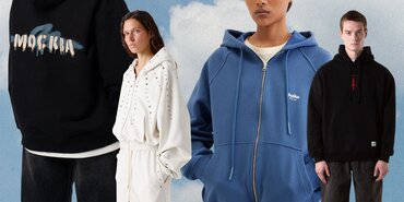 10 990 рублейДля холодной осени — кофта с глубоким двухслойным капюшоном. Покрасили худи вручную в технике garment-dyed: вместо рулонов ткани пигмент нанесли в конце уже на готовое изделие. Получился винтажный и даже «выстиранный» эффект.