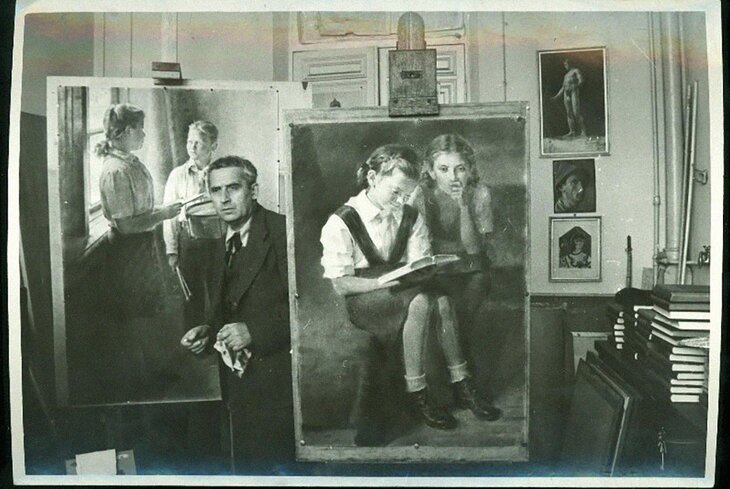 Жили мы в комнате 19 метров, которая называлась мастерской. Когда я писал чуть ли не пятиметровые холсты, сесть некуда было. Дочь уже подрастала, и ей все время приходилось говорить: «Не трогай, не трогай!» Они сидели тихо в то время, когда я писал. Это было дивное время борьбы за существо художника. И жена действительно мне помогала в этом.
