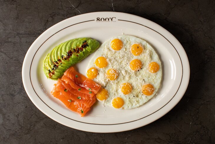 Яичница с лососем и авокадо обойдется в 1 900 рублей, а блинчики с говядиной и страчателлой — в 1 200. По сравнению с другими местами весьма бюджетно, но если захотите взять целый сет из блюд, это тоже обойдется в круглую сумму.