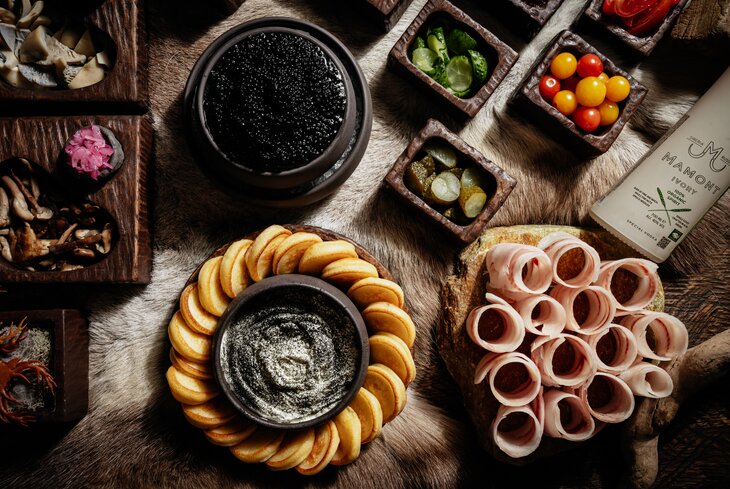 На случай, если вы не знали, куда потратить почти 100 000 рублей, в ресторане сибирской кухни приготовили сет стоимостью в 95 000. Вам принесут строганину из северного чира, килограмм осетровой икры, десять видов солений, рыбу, дичь, кедровую кашу, тартар из оленя и прочие сибирские специалитеты.