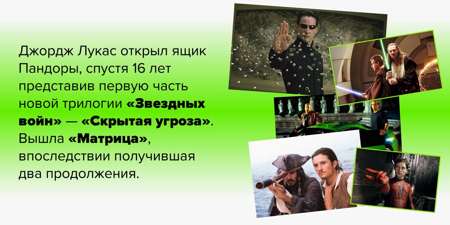 1999-й, некоторыми определяемый как лучший год в истории кино, подарил нам целую плеяду франшиз, которые в дальнейшем активно развивались именно в 2000-е.