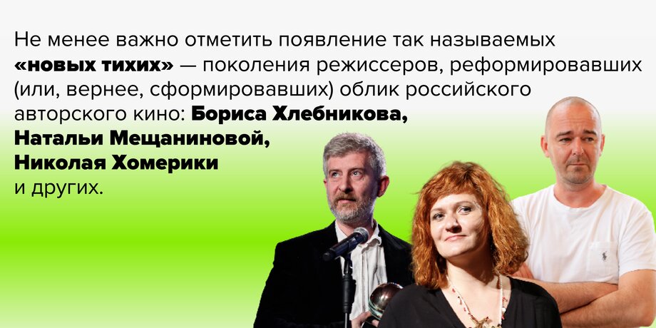 В 2010-м же свой первый фильм снял Юрий Быков. Ну и конечно, не стоит забывать про триумф «Левиафана» Андрея Звягинцева в Каннах в 2014 году.