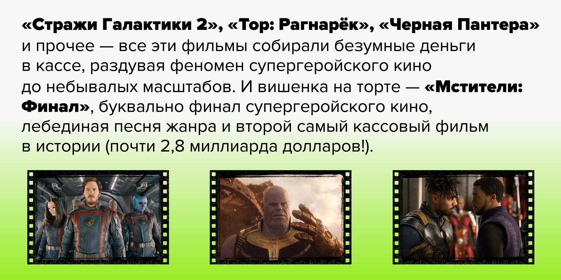 В то же время немалому количеству людей все эти супергеройские шашни с мультивселенными, большим количеством спецэффектов и неприличными дозами пафоса здорово надоели.