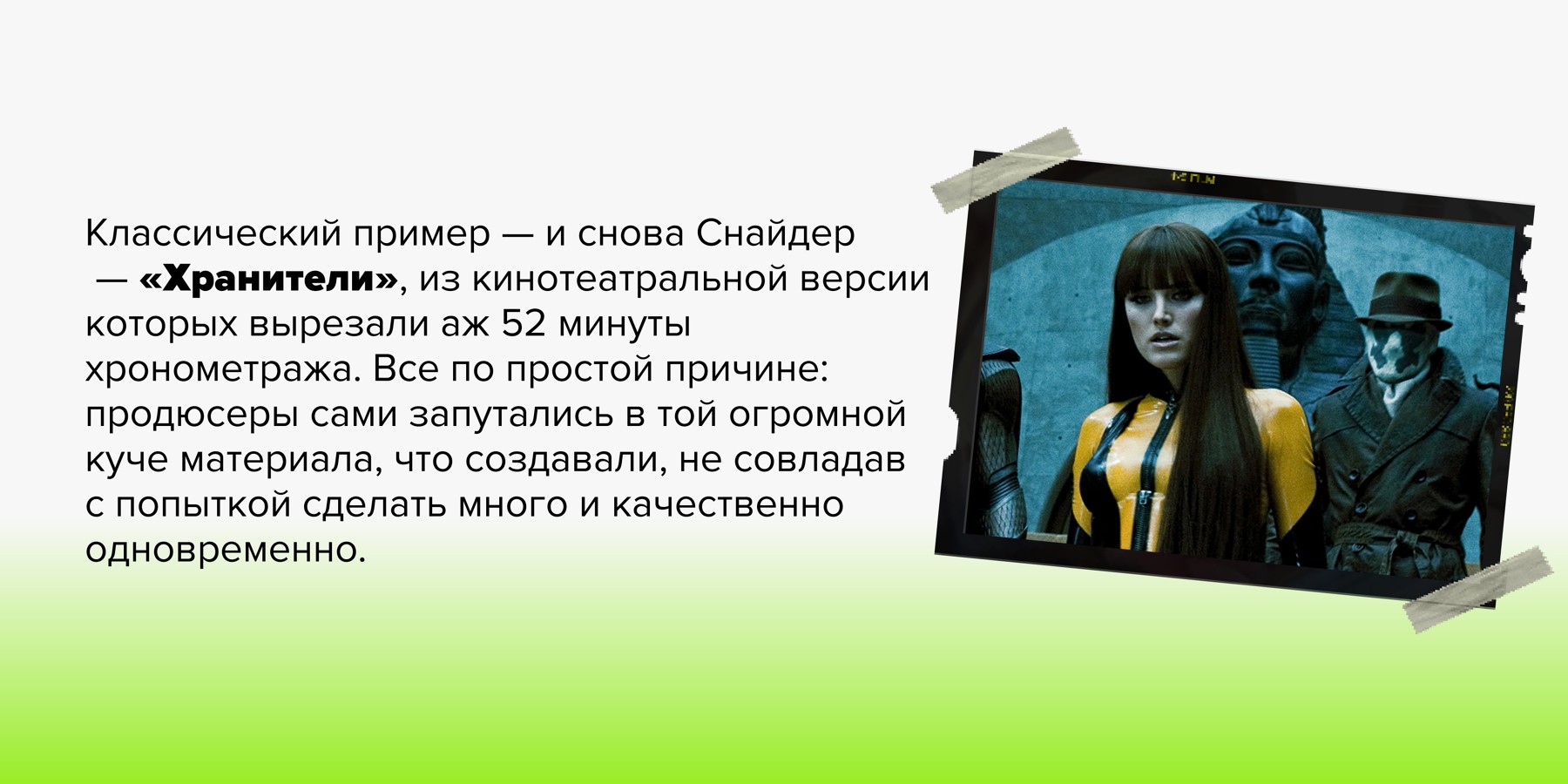 Это сейчас слово «снайдеркат» (версия фильма, которая содержит только то, что хотел видеть Зак Снайдер. — Прим. ред.) и разговоры о режиссерских версиях фильмов звучат как нечто вполне привычное. Но тогда, в 2010-х, еще казалось чем-то диким, что Заку Снайдеру не дают выпустить в прокат его, авторскую версию «Бэтмен против Супермена», а материал «Лиги справедливости» переиначивают на свой манер по разумению начальства Warner Bros.