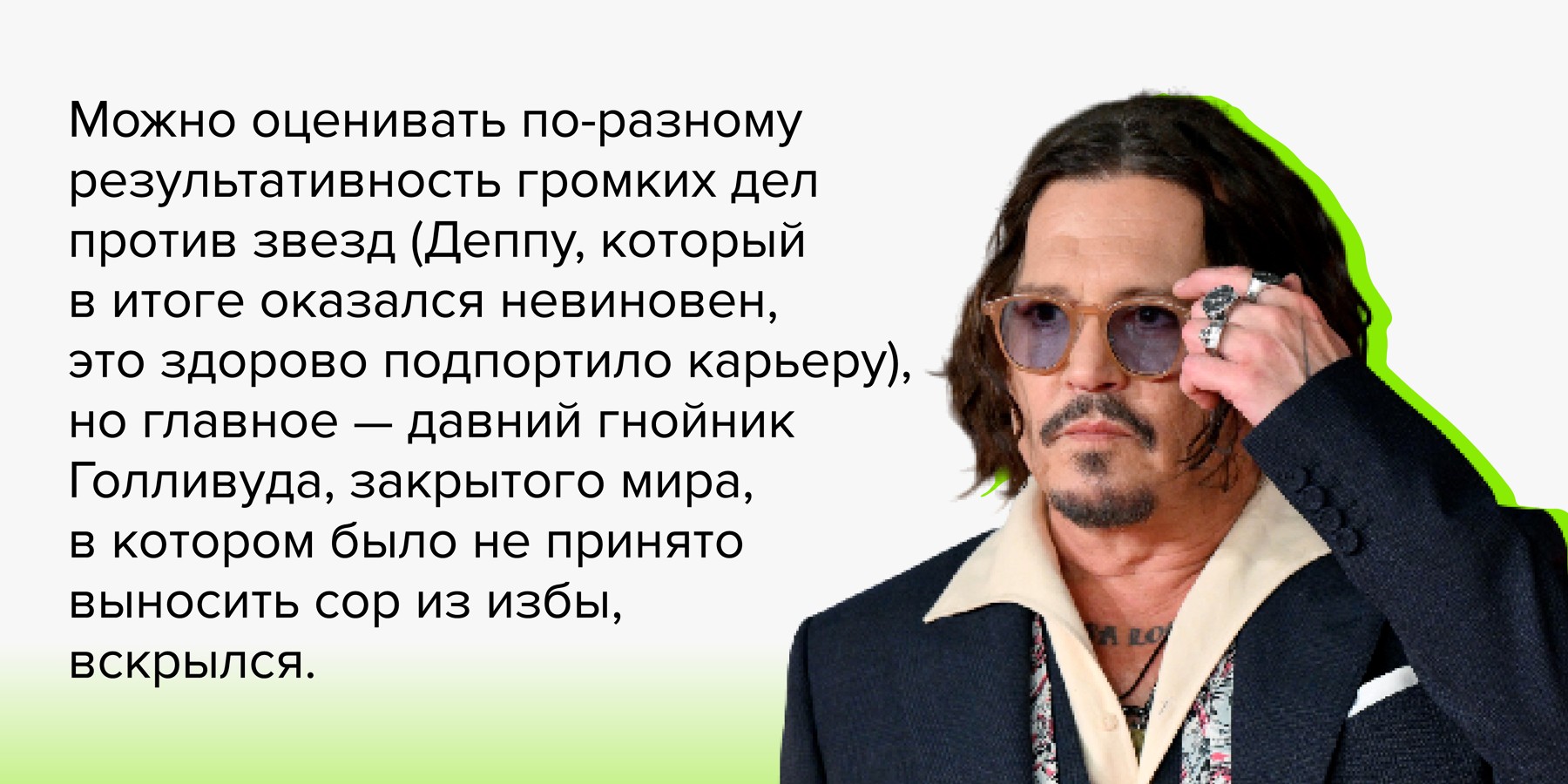 Отношения режиссера с продюсерами — это целая драма, но принципиально новый виток эта история получила после того, как десятки актрис обвинили звездного продюсера Харви Вайнштейна в сексуализированном насилии. Новый — потому что вышла она за пределы довольно узкого и закрытого круга бонз: обвинений с каждым днем становилось все больше — против актеров (Кевин Спейси), комиков (Луис С. К.), режиссеров (Бретт Рэтнер) и сценаристов (Нил Гейман). Это явление даже получило название «эффект Вайнштейна». Впоследствии часть подобных обвинений была опровергнута. Как, например, в самом громком деле — Джонни Деппа и Эмбер Хёрд. Также обвинения сняли и с Кевина Спейси.