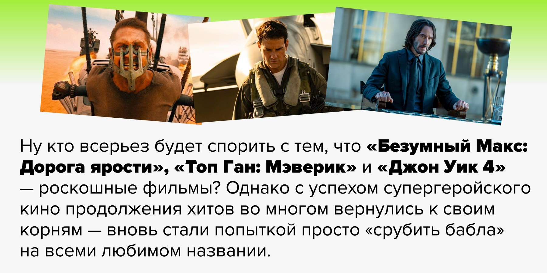 В первой статье цикла мы писали о том, что из довольно бесполезного, а порой и деструктивного явления сиквелы в XXI веке превратились в крайне интересный феномен: последующие фильмы становились, пусть и не всегда, не просто повторением, а развитием идей оригинальной картины.