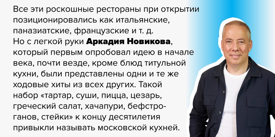 В первой части спецпроекта о еде гастрокритик Анна Кукулина рассказывает, почему 2000-е стали эпохой гламура для московского ресторанного бизнеса, какие фишки того времени до сих пор используют шефы сейчас и что звездному ТВ-повару Гордону Рамзи не понравилось в тарелках московских заведений.