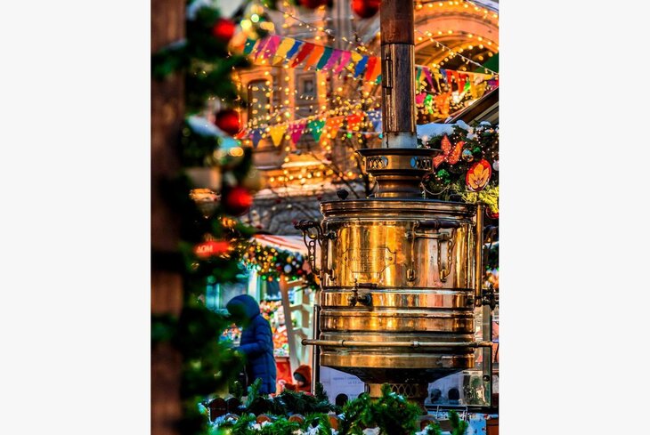 Здесь самовар топят на дровах и предлагают выпить чай на травах (250 рублей) или рождественский напиток (350 рублей). Запах горящих поленьев стоит на всю ярмарку, так что не взять с собой что-то согревающее и не отправиться на ярмарку — невозможно!