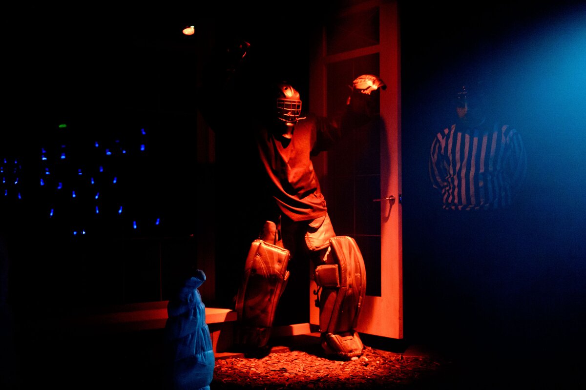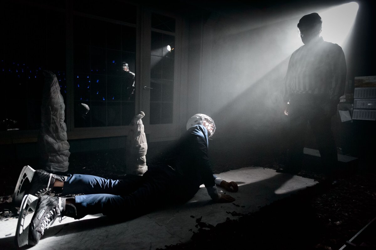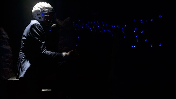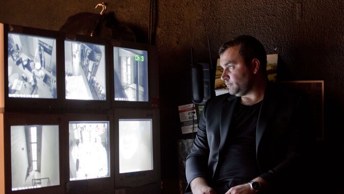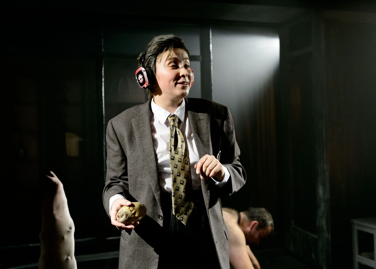 Дальше еще интереснее. Постановка проходит в нескольких измерениях: на сцене выстроена застекленная мансарда, перед ней – шесть экранов, на которых транслируется видео с камер наблюдения в других комнатах богатого загородного дома. У наушников есть три регулятора, с их помощью зрители могут переключаться между каналами и сами решать, на чем фокусировать внимание: следить ли за спальней хозяев или за их гостями, переместиться в спортзал или душ. Кроме того, на наушниках есть еще и световые датчики, которые меняют цвет при смене канала. Так что можно не только прослушивать актеров, но и подсматривать за зрителями: взглянешь на зал – и сразу ясно, кому интереснее философские размышления, а кому – секс героев.