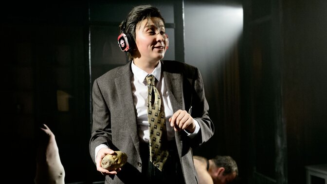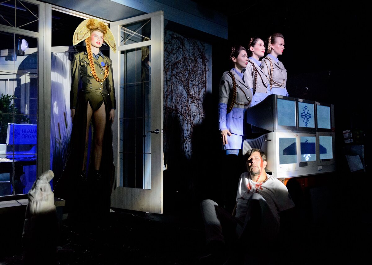 Со временем основная линия действия, соответствующая тексту пьесы, переносится на застекленную кухню на сцене, но на экранах все равно идут второстепенные истории. Авторы постановки не дают никаких указаний – каждый зритель волен сам решать, какому действию уделить время. Но эта свобода выбора оказывается мучительной, ведь даже если хорошо знать текст Сорокина, все полтора часа придется судорожно переключать каналы, чтобы ничего не упустить. Очевидно, чтобы ухватить все смыслы, одного просмотра недостаточно.