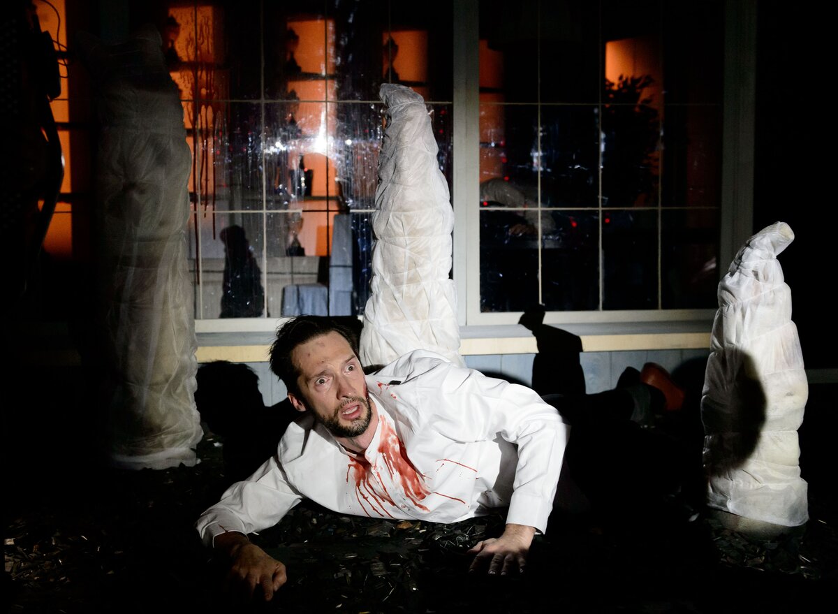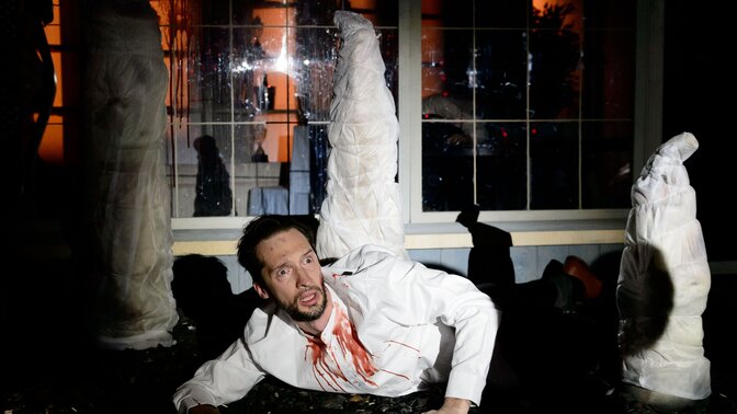 В «Практике» показали премьеру спектакля Юрия Квятковского «Занос» по одноименной пьесе Владимира Сорокина – размышление о власти и насилии. В основе сюжета: утро в загородном доме русского олигарха, которое завершается катастрофическим разгромом.