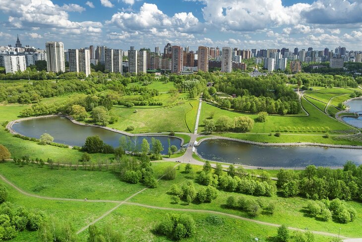 По парку советуем крутить педали только опытным велосипедистам. Если хотите почувствовать крутые подъемы и спуски, начинайте рядом со смотровой площадкой. А для новичков и любителей неспешной езды подойдет спокойная и живописная набережная. Смело проезжайте мимо Лужнецкого метромоста — после него рукой подать до Нескучного сада, Парка Горького и «Музеона».