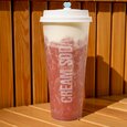 Выбирайте напиток с малиной и личи (450 рублей) на низколактозном молоке. Очень освежающе!