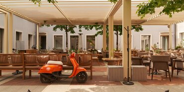 Здесь хачапури готовят в дровяных печах, и, надо сказать, выглядят они несколько нетипично. Все дело в начинках: есть с вешенками и трюфелями (890 рублей) и даже с мортаделлой и фисташками (1 390 рублей). Но даже классическое мегрельское хачапури (690 рублей) на тарелке смотрится несколько иначе.