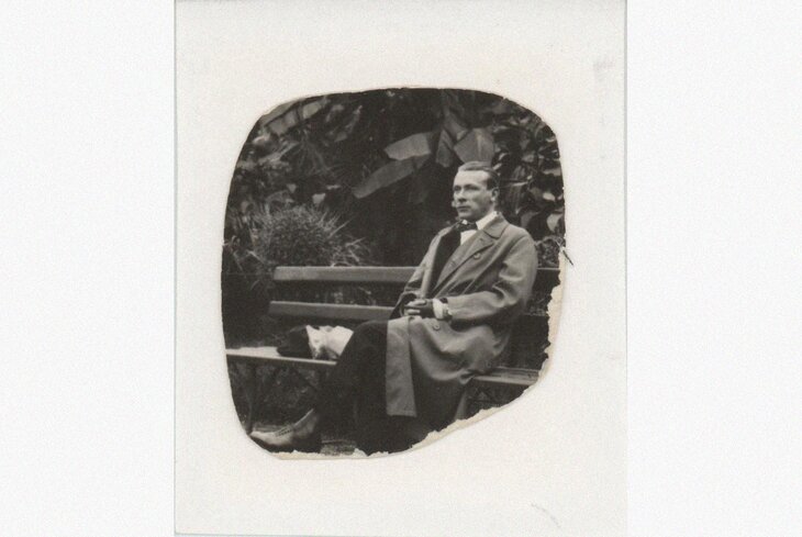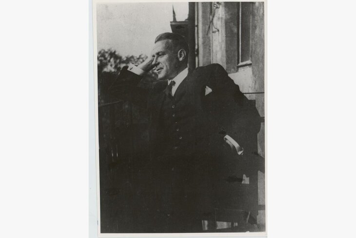 Ушакова Наталия Абрамовна. Фотокопия. Булгаков Михаил Афанасьевич на балконе. Нащокинский переулок, д. 3–5, кв. 44. Апрель 1935 г.