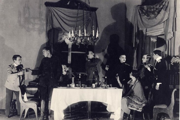 Фотография пересъемочная. Сцена 2-й картины I действия из спектакля «Дни Турбиных» по пьесе М. А. Булгакова. Спектакль «Дни Турбиных».1926 г.