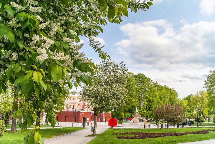 Что посмотреть в Москве за день? Можно отправиться к окрестностям Кремля и заглянуть в этот сад. Изначально его задумали как мемориал в честь победы над Наполеоном. В первые годы он носил название Кремлевский, но после коронации Александра II его переименовали. Сегодня это просторный комплекс площадью около 10 гектаров со множеством деревьев и кустарников.