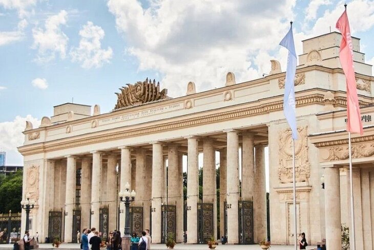 Парк Горького в Москве — популярное место для тех, кто ищет, что посмотреть за один день. Внутри арки главного входа расположен музей истории парка, а на вершине — смотровая площадка. С нее открывается вид как на сам парк, так и на другие достопримечательности Москвы: памятник Петру I, Шуховскую телебашню, башни Москва-Сити и высотку МГУ.