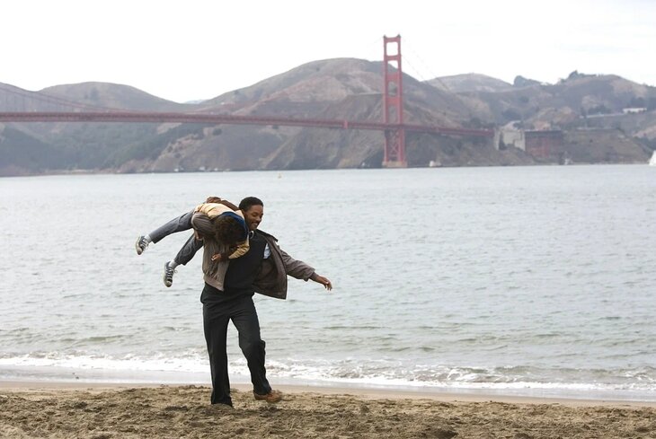 В новом павильоне «Музеона» вечером показывают драму с Уиллом Смитом и его сыном. Крис — отец-одиночка, который изо всех сил старается подарить счастливое детство ребенку. Пытаясь выбраться из нищеты, он идет к своей цели — стать брокером на Уолл-стрит.