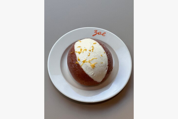 В ресторане с названием Maritozzo уж точно не могли обойтись без фирменной булки. Сейчас ее подают с клубникой, ягоды кладут прямо в начинку, между тестом и кремом.