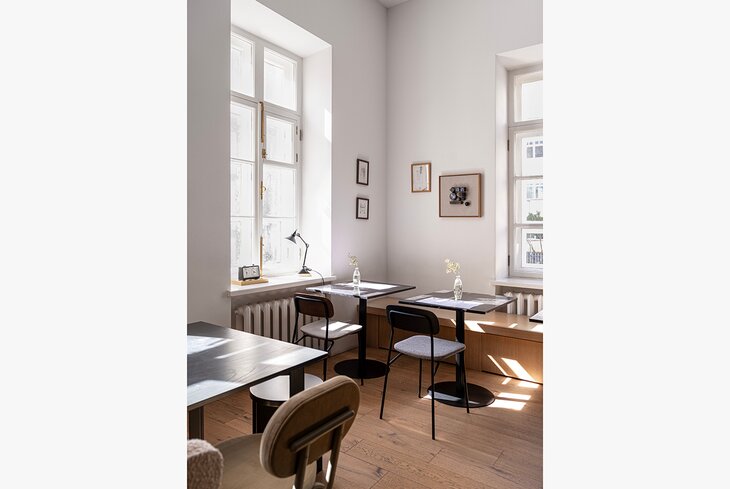 Кафе открыли на втором этаже пространства A-House, где проходят выставки и мастер-классы для архитекторов и дизайнеров. Места тут максимум на 11 человек, зато пространство уютное и тихое — отлично подойдет для работы или чтения книжки.