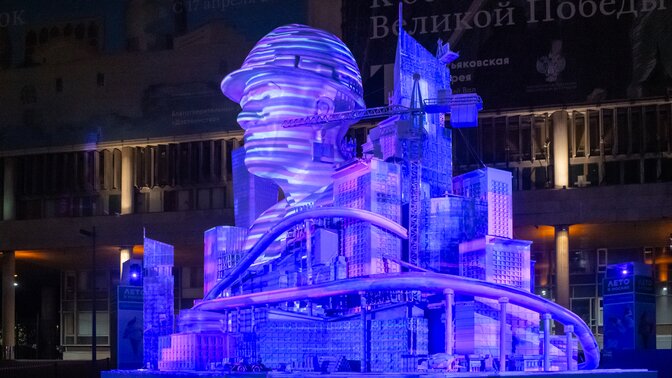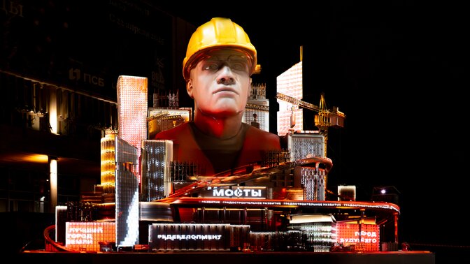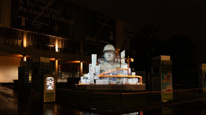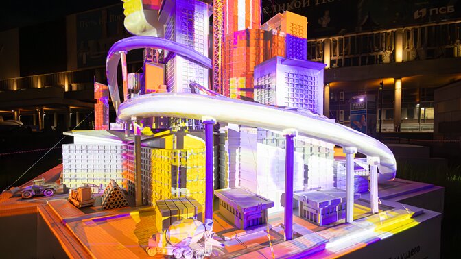 Каждый вечер парк преображается световым шоу: на арт-инсталляции «Строитель будущего» отображаются цифровые проекции, созданные участниками. Это живое творчество, где каждый может внести личный штрих в визуальную картину города будущего.