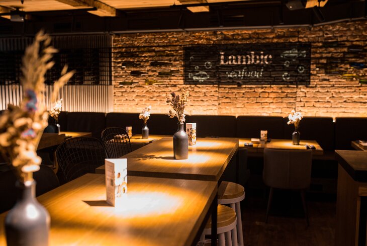 Незатейливый лофт с кирпичными стенами, приглушенным светом и джазом на фоне под стать такому же простому и понятному меню. Из закусок берите лепешку роти с лососем (1 350 рублей), из горячих блюд — бефстроганов с картофельным кремом (1 000 рублей), а из сладкого — крем-брюле с маракуйей (600 рублей).