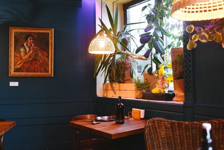 Гордость гастробара в уютном переулке — более 40 блюд из морских гадов. Креветки, устрицы и вонголе тут запекают, варят и пассеруют. Так, тартар готовят с лангустинами (730 рублей), кильку кладут на картофельные тосты (520 рублей), а в зеленый салат добавляют хрустящие кальмары (780 рублей).
