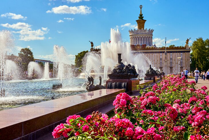 Праздничные дни обещают быть солнечными и теплыми, поэтому бежим на музыкальные и поэтические спектакли под открытым небом у фонтана «Дружба народов». Вечером покажут мультимедийное шоу «Кольца Москвы» о жителях столицы и о том, как они меняют мегаполис. Программа начнется в 12:00.