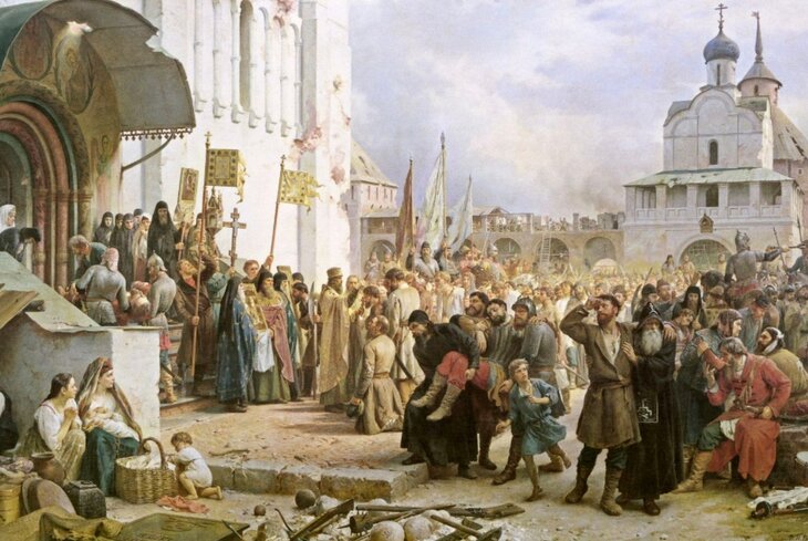 Эту картину Верещагин написал по просьбе императора Александра III. Посвящена она реальному историческому сюжету времен Смуты, когда войска Лжедмитрия II осаждали подмосковную Троице-Сергиеву лавру.