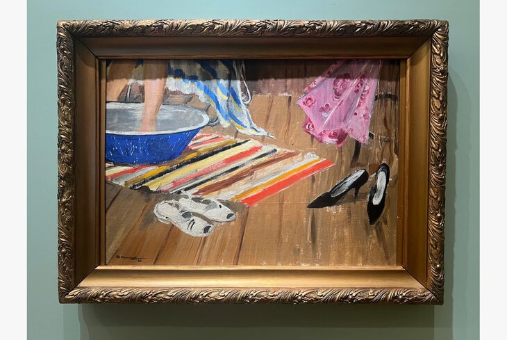 Произведения женщин-художниц встречаются на выставке исключительно в разделе «Новая Москва». Это работы последних 50 лет от датированного 1980 годом полотна Натальи Нестеровой «Метро» до написанной в 2016-м картины Ирины Марц «Утро. Птицы».