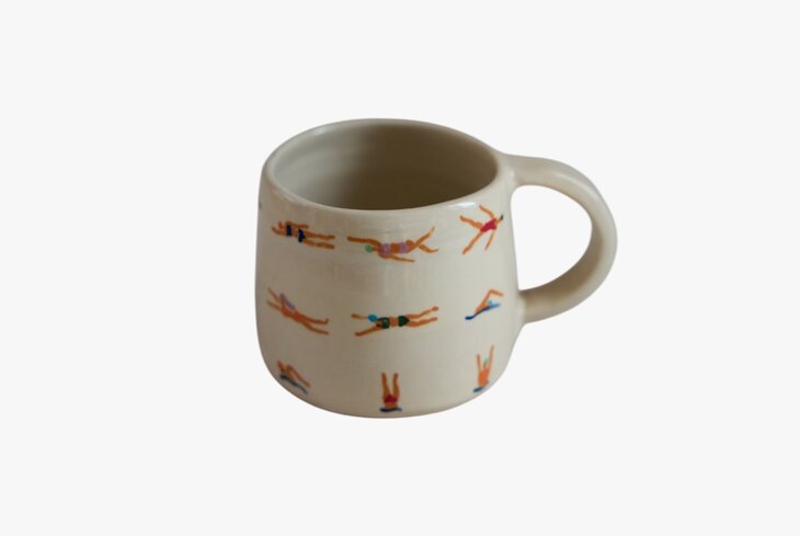 Коллаборация художницы-керамистки Ани Константиновой и Третьяковки — кружки к выставке «Александр Дейнека. Гимн жизни» с принтом в стиле мастера. Дейнека в основном писал спортсменов, что, кстати, и увидите на выставке. А теперь его пловцы плывут прямо по кружке с чаем.