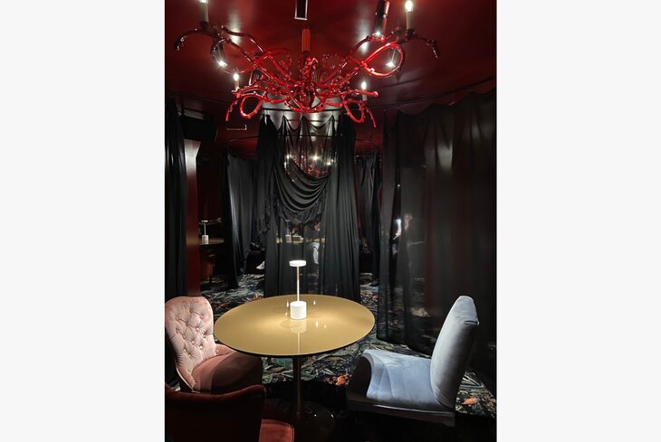 Тот самый секретный уголок, куда ведут только свои. Его открыл Роман Милостивый еще в 2012 году в бывшей чайной комнате ресторана «Шелк», и с тех пор это место стало культовым для любителей барной культуры. Места немного: всего четыре столика.
