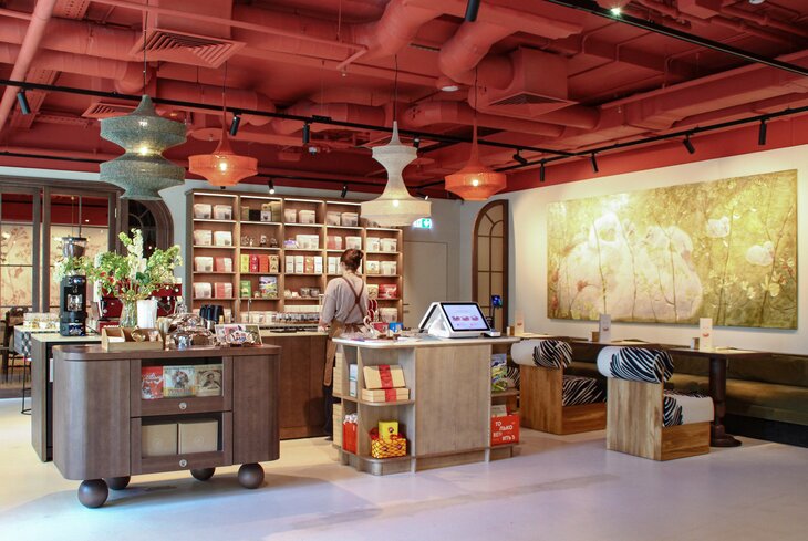 Здесь гораздо просторнее, чем в остальных точках сети, но ощущение, что ты находишься в квартире у друзей, сохранилось. Заваривают тут с полсотни лично отобранных владельцем чайных сортов: в меню, например, купаж «Министерский» (1 200 рублей) с черносмородиновым листом или «Люмичино» с растением мирт и ванилью (чашка напитка выйдет в 300 рублей), есть даже безалкогольные коктейли на основе, конечно же, чая. Помимо авторских купажей, можно взять канеле (200 рублей), торт «Птичье молоко» (450 рублей) и фирменный медовик (450 рублей).