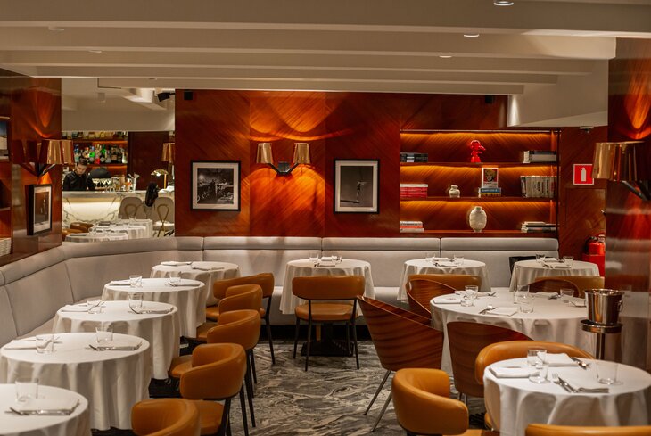 Еще одна пафосная локация, где почти всегда заняты все места. Оформление приятно лаконичное с несколькими необычными акцентами — полом из пяти сортов мрамора и стенными желтыми панелями из дерева мовингу. Присмотритесь к завтракам, их тут готовят до 13:00. Берите картофельные пончики с пармской ветчиной (770 рублей), пшенную кашу с грушей и пармезаном (550 рублей) и омлет со страчателлой (890 рублей).