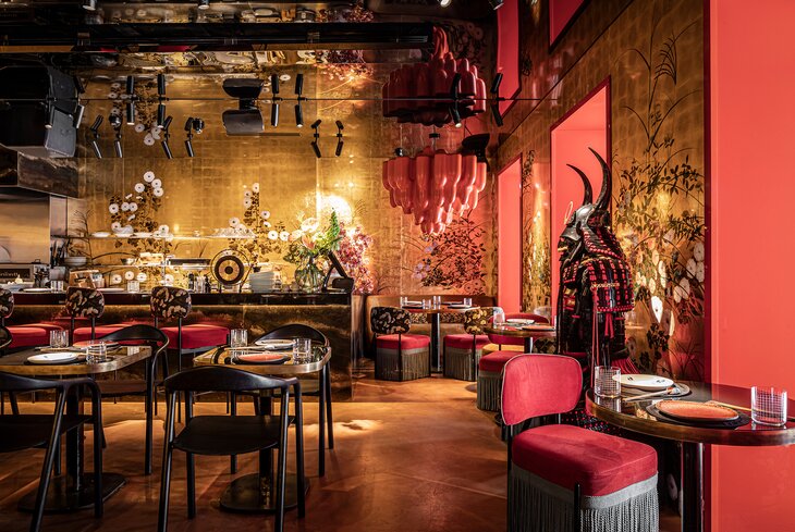 Супермодное паназиатское место. Оформили его эффектно: на стенах — гигантские цветы и мазки краски, а по всему потолку тянется медная люстра-дракон. Не уходите без попкорна из креветок с авокадо (990 рублей), фо-бо с говядиной и пак-чой (890 рублей) и вонтонов — китайских пельменей — с угрем (950 рублей).