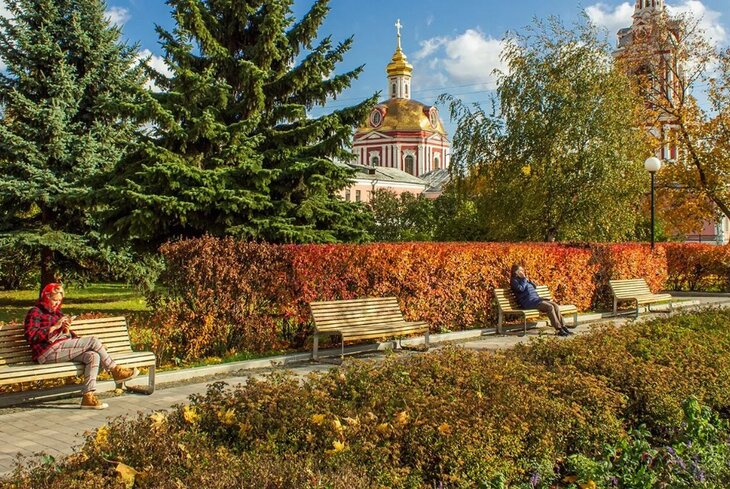 Фотосессия в Москве не обходится без посещения этого места. Нескучный сад в Москве осенью имеет особо живописный вид. Тут найдете липы, клены и дубы на Аллее влюбленных. Она была задумана еще в 1996 году рядом с беседкой-ротондой.