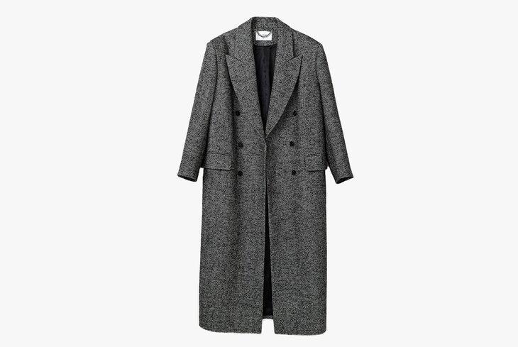Снова нестареющая классика — двубортное пальто в серо-коричневом цвете. Посадка оверсайз позволяет надевать под эту модель плотные и объемные вещи, так что демисезонный вариант вполне может превратиться в зимний.