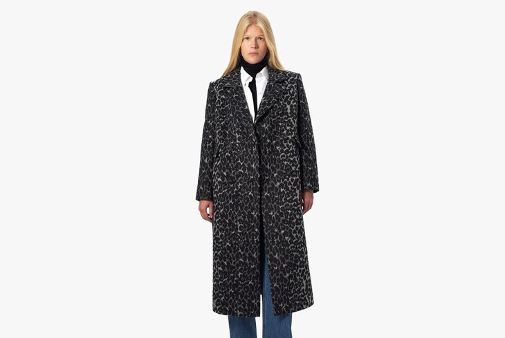 Пальто с трендовым леопардовым принтом из новой коллекции. Его делают из премиальной шерстяной ткани с добавлением шелка и альпаки, вдобавок изделие не портится после длительной носки благодаря мембранной технологии RaftPro. У пальто широкий английский воротник, а еще удобные вместительные карманы с клапанами.