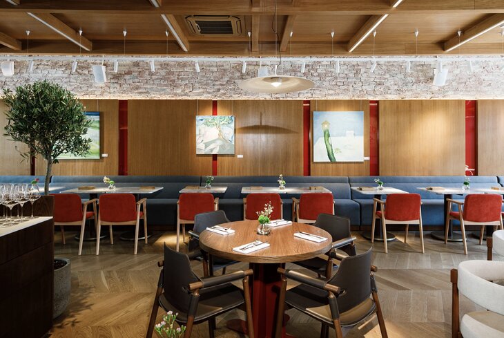 Ресторан с максимально домашним флером. Заявка на деревенскую атмосферу с понятными блюдами и простым интерьером снижает градус ответственности, но не умаляет качества исполнения. Гордость места и основа меню — фермерские сыры. Их тут добавляют практически во все блюда, но попробовать буррату (620 рублей), рикотту (210 рублей) и страчателлу (340 рублей) можно и по отдельности.