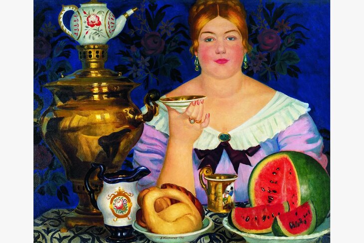 Борис Кустодиев. Купчиха, пьющая чай. 1923