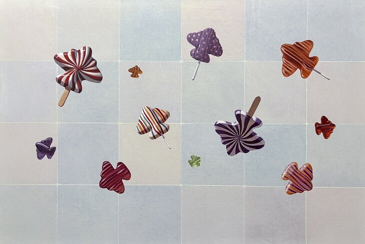 На выставке представлено около 50 работ современного художника Евгения Музалевского. Некоторые живописные картины напоминают детские рисунки: в них много экспрессии и ярких образов. Автор отличается своим самобытным стилем и смелым подходом к форматам: рядом с пятиметровым холстом можно увидеть расписанный карманный блокнот.
