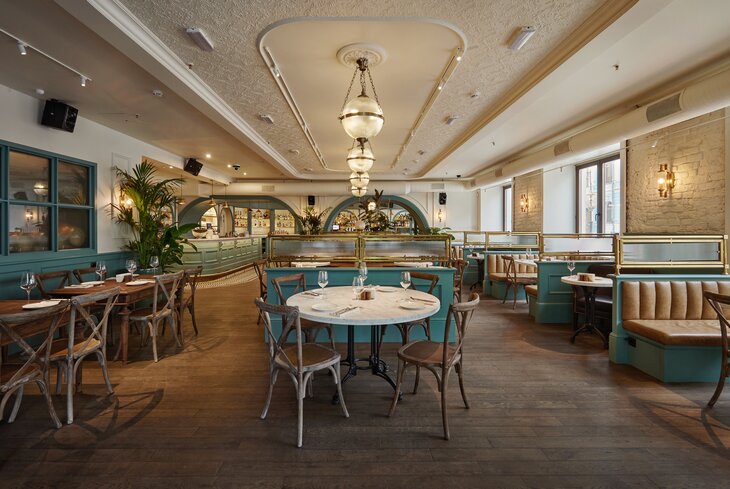 В меню этого бистро — отсылка к кухне Турина, столицы региона Пьемонт на итальянском севере. Блюда там максимально не похожи на традиции страны, поэтому в ресторане даже нет пиццы, а раздел паст совсем крошечный. Зато полно закусок и салатов. Берите артишоки гриль с сырным муссом (890 рублей), тартар из говядины с мозговой косточкой (940 рублей) и консоме с бычьими хвостами (660 рублей).
