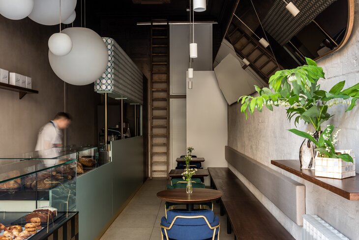 Эстетское кафе с буквально пятью столиками, где пекут практически все — от хлеба до круассанов. Так что работать за ноутбуком тут не получится — только болтать с друзьями, пить кофе с пенкой и пробовать ореховые пудинги (1 200 рублей), улитки (490 рублей) и слойки с инжиром (950 рублей). Булочки одновременно и хрустящие, и очень мягкие.