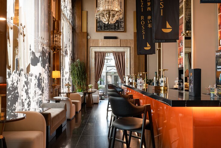 В самом ампирном итальянском ресторане Москвы (подлинный антураж сталинской высотки, античные статуи, зимний сад) решили выделить бар в качестве отдельной единицы. В обновленном интерьере нашлось место и раскинувшим крылья имперским орлам, и контактной барной стойке, и удобным столикам для коктейльных вечеров.