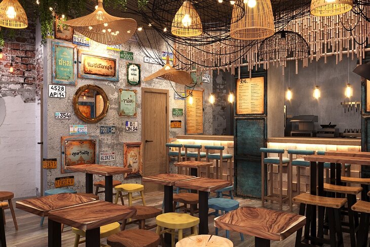 Также в первой стационарной точке, которая должна дать старт будущей сети, добавились традиционные десерты, например клейкий рис с манго (490 рублей), инфьюзы и твисты на классические коктейли с азиатскими нотами. Интерьер всеми силами стремится перенести нас на курорт в районе Пхукета посредством деталей оттенка морской голубизны, бамбука и изобилия зелени.