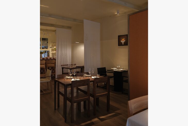 Посыл понятен: шеф-бунтарь повзрослел и отказался от внешнего эпатажа, сосредоточившись на том, что происходит на тарелке. Непосредственно кухней руководит су-шеф Викентьева по «Белуге» Никита Никитин. Меню заявлено как итало-французское, но в каждом блюде видна направляющая рука.