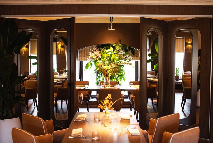 Атмосфера под стать: дедушкина мебель и фанерные перегородки, воплощающие идеи датского модернизма 1957 года, создают редкое для снобского окружения ощущение, что тебе тут будут рады даже ненаряженному, так что Copen 57 можно использовать как детокс от режущего глаз патриаршего гламура.