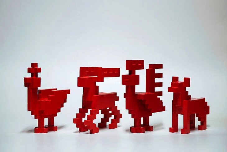 Керамические волки-космонавты, пикселеобразные деревянные игрушки по мотивам русской вышивки и тканое панно, имитирующее сноп пшеничных колосьев, пропущенных через шредер. Проекту «Трын*Трава», который проходит в Москве уже в восьмой раз, удается совмещать актуальные дизайнерские тренды с доступностью и иронией.